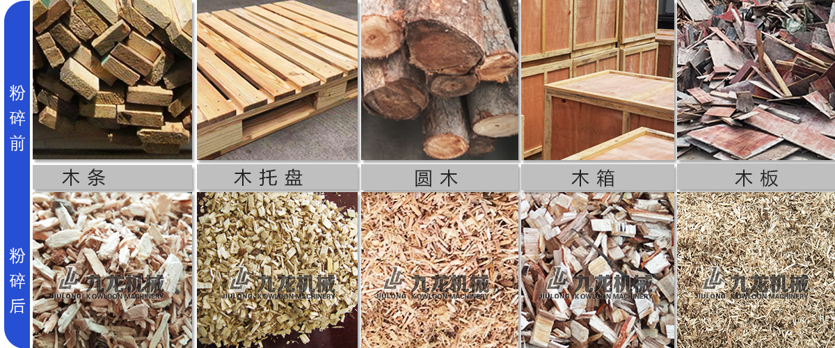 各種廢舊木材、板材料、木托盤、下腳料、舊家具、木板、木箱等。現(xiàn)在粉碎木材和農作物的人越來越多,木材破碎后可以應用在電廠發(fā)電,制作香行業(yè)、能源棒的生產和菌菇生產養(yǎng)殖等等不同的領域。