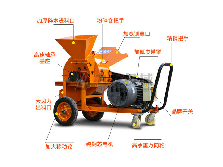 木屑粉碎機主要由機架、外殼、襯板、轉軸、刀片、刀盤、錘片、篩網、引風機、皮帶輪等組成。木屑粉碎機占地面積小、結構布局合理緊湊,低能耗、效率高、成品料成型好,很適合流動作業,特別是在食用菌加工這個行業里,是食用菌加工設備中理想的選擇。